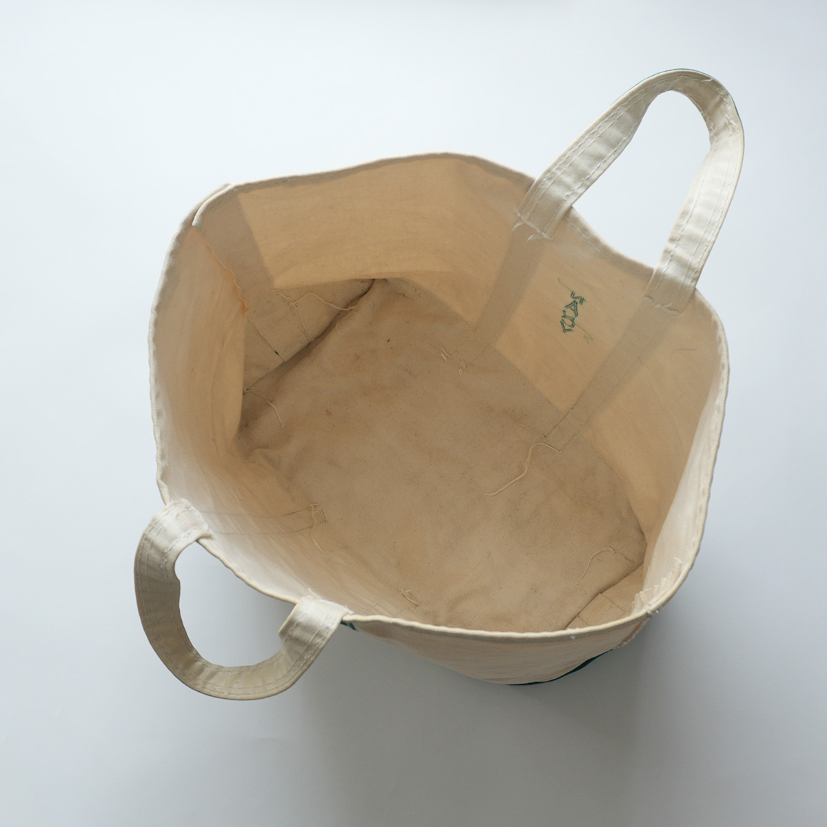 素材は、厚手のコットンキャンバス地で作られたもので、しっかりとした作りの良いバッグです。
