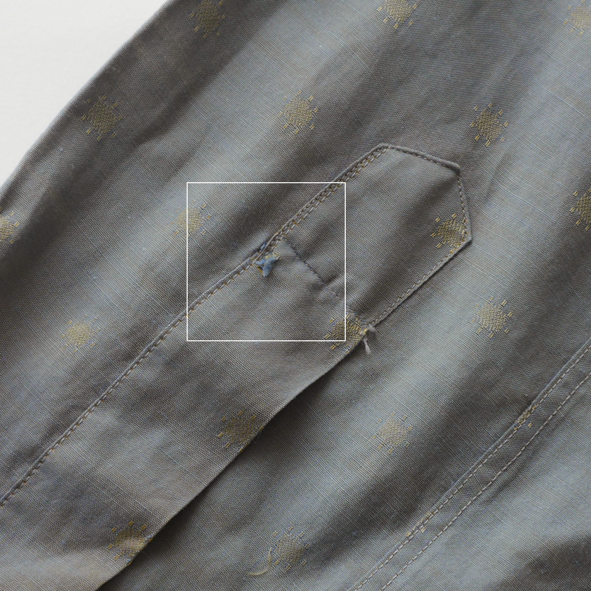 生地の独特のタマムシ色の色合いがとても良い雰囲気で、オールド感のある良いシャツです。